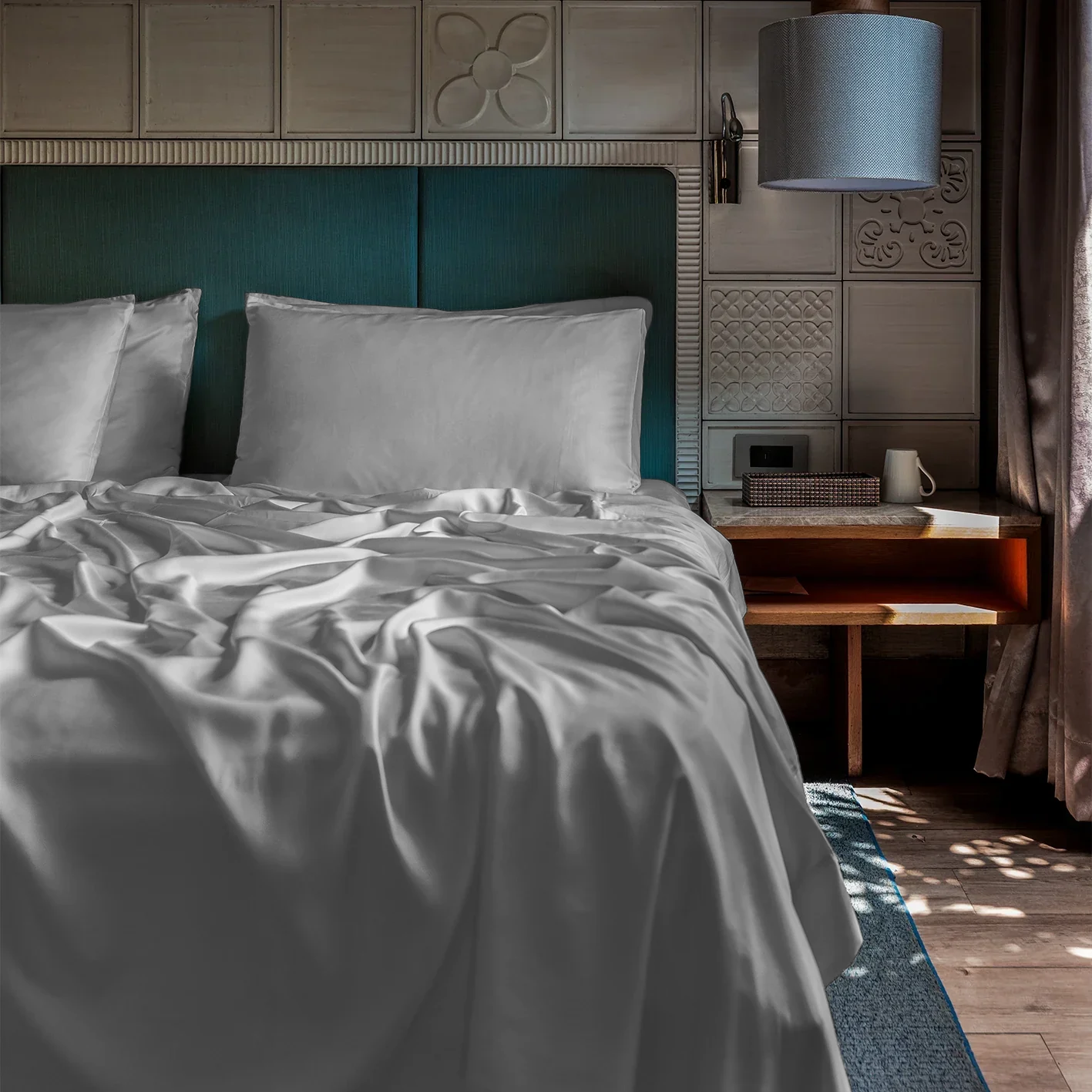 Bamboo Snow Silk bedsheets are crafted from premium bamboo fibers using our signature weave, giving them a silky-smooth finish and elegant drape.